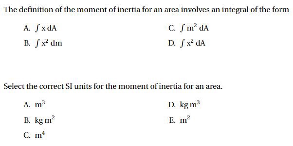 . The area in mm 2 and the length is also in mm the moment of inertia is expressed mm 4. So the unit of moment of inertia in SI system is kgm2. Area Moment of Inertia - Imperial units.